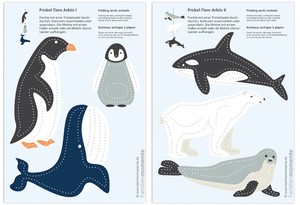 Prickel Tiere Arktis Bastelbogen Mit Orka Eisbar Und Seerobbe Zum Prickeln Fur Ein Mobile Oder Eine Girlande Bastelbogen Tiere Basteln Mobile Basteln