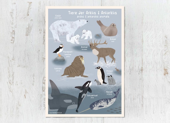 Tiere Der Arktis Antarktis Poster Illustrationen Etsy