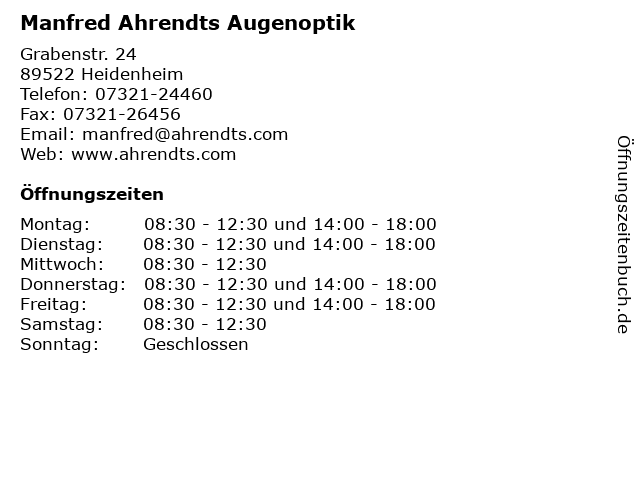 ᐅ Offnungszeiten Optik Ahrendts Grabenstr 24 In Heidenheim