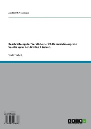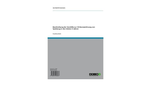 Beschreibung Der Verstosse Zur Ce Kennzeichnung Von Spielzeug In Den Letzten 3 Jahren German Edition Ebook Kossmann Jan Henrik Amazon In Kindle Store