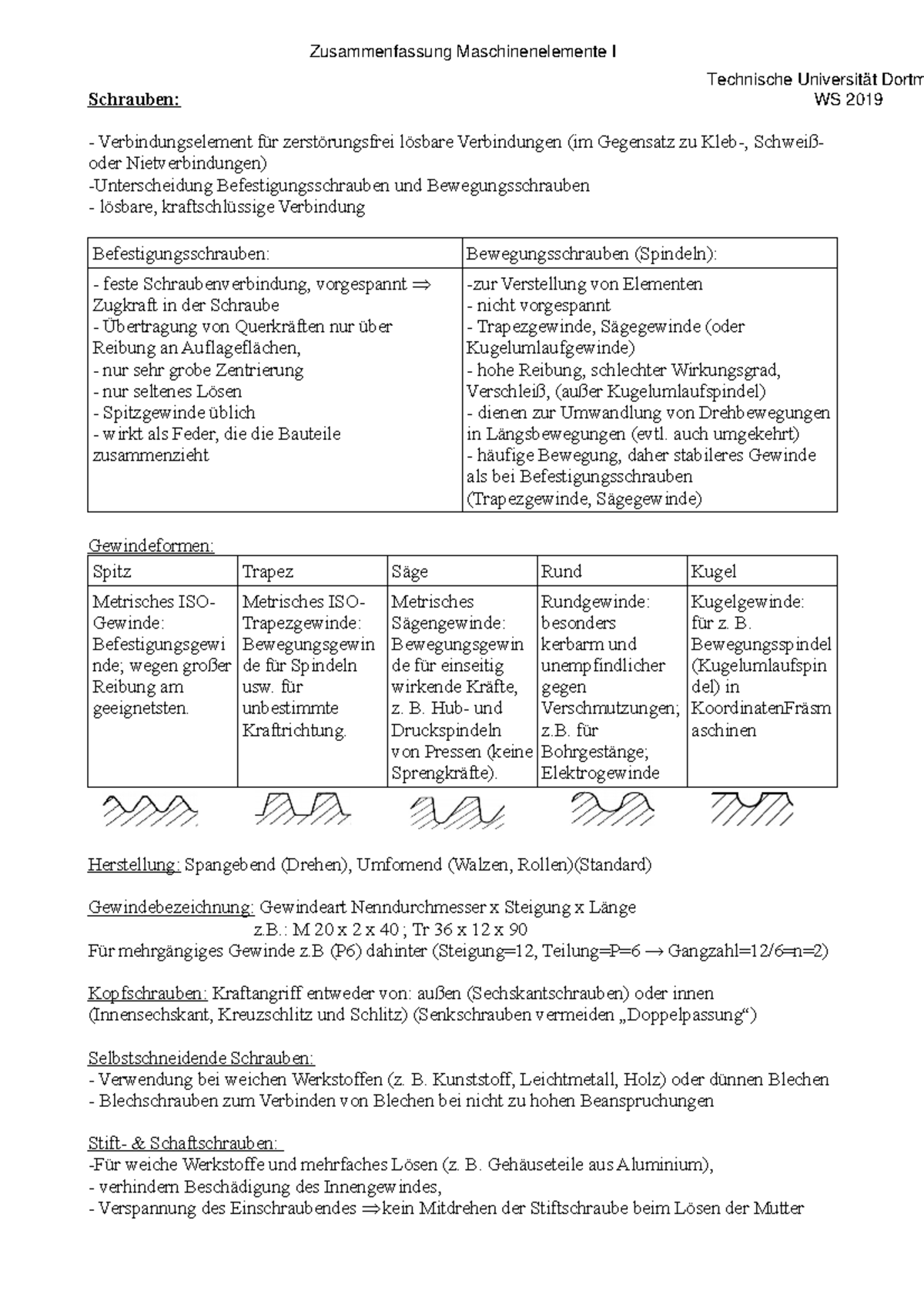Zusammenfassung Maschinenelemente I Zusammenfassung Maschinenelemente Technische Dortm Ws 19 Schrauben Verbindungselement Verbindungen Im Gegensatz Zu Studocu