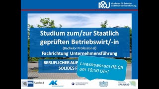 Der Abschluss Staatlich geprüfte/r Betriebswirt/in genießt in Unternehmen ein hohes Ansehen und wird bei Bewerbungsverfahren einem Bachelor of Arts meist gleichgestellt, zum Teil sogar vorgezogen Nächster Studienstart ist am 6. Eine mit Erfolg abgelegte staatliche oder staatlich anerkannte Prüfung an einer auf eine Berufsausbildung aufbauenden kaufmännischen Fachschule und eine anschließende mindestens dreijährige Berufspraxis nachweist. Staatlich geprüfter Betriebswirt Technischer Betriebswirt Empfohlener Inhalt Leider funktioniert Google Ads nicht ohne die Verwendung von Cookies Dem hast du jedoch widersprochen Du kannst den Inhalt mit einem Klick anzeigen lassen Inhalte von Google Ads anzeigen.