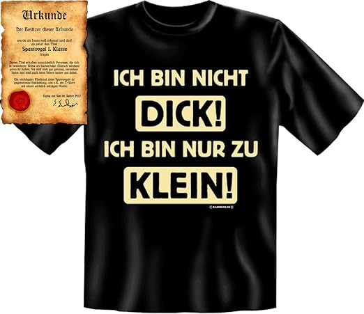 Witziges Spruche Shirt Ich Bin Nicht Dick Ich Bin Nur Zu Klein T Shirt Mit Spassurkunde Amazon De Bekleidung