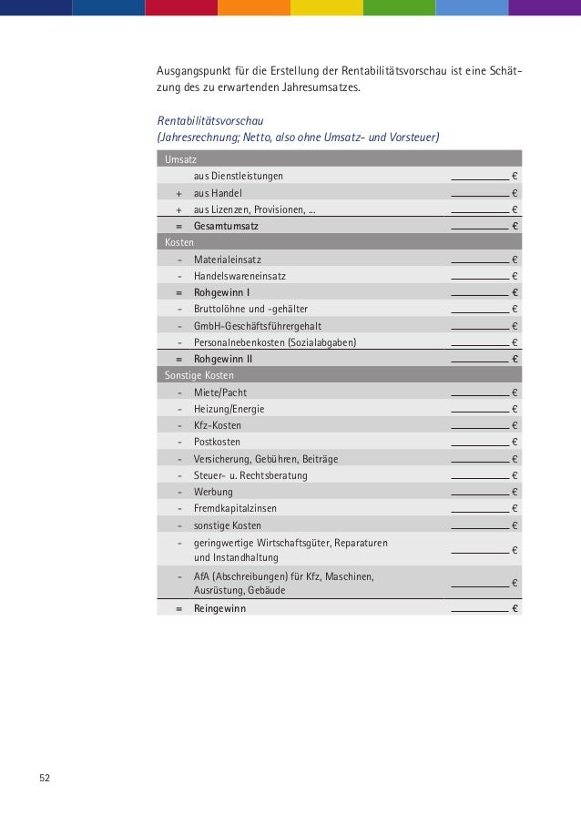 Rentabilitatsvorschau Pdf Format Grundernet Beratungs Und