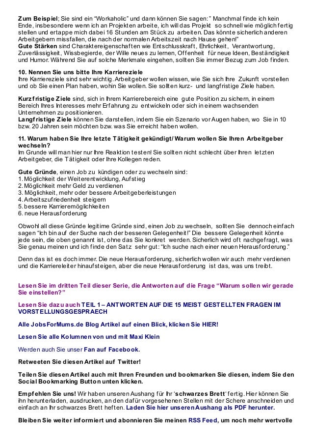 Kommen in fast jedem Vorstellungsgespräch vorSo vorhersehbar diese Fragen auch sind Bei vielen Bewerbern sorgen sie trotzdem für feuchte Hände Wir verraten Ihnen, was dahinter steckt und wie Sie klug antworten. Sie haben es vielleicht bereits gemerkt Bei der Antwort auf diese Frage ist das Wichtigste, dass Sie darauf aufbauen, warum Sie unbedingt zu diesem bestimmten Arbeitgeber möchten und nicht einem anderen Wenn Sie sich an diesen Grundsatz halten, punkten Sie im Vorstellungsgespräch KEINE Antwort ist, «weil mir die ausgeschriebene Stelle. Warum möchten Sie bei uns arbeiten?.