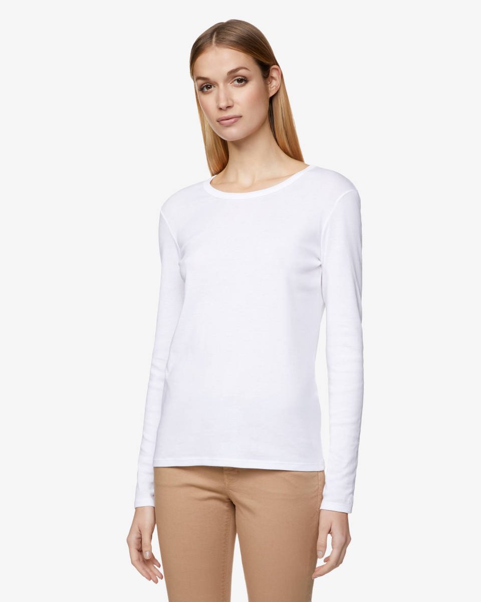 Damen Longsleeve Mit U Boot Ausschnitt Weiss Bio Baumwolle Grundstoff Net