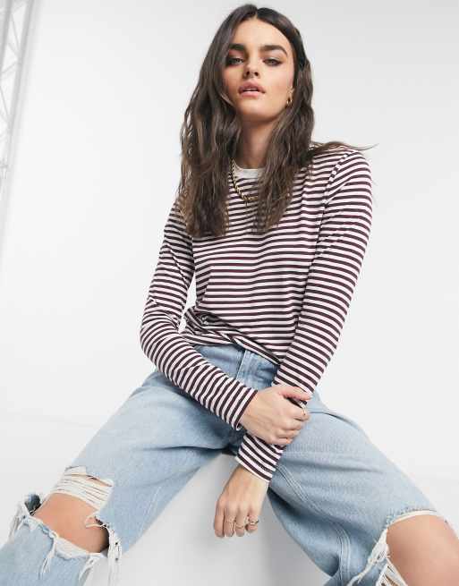 Selected Femme Perfect T Shirt Mit Langen Armeln Und Rotem Streifenmuster Asos