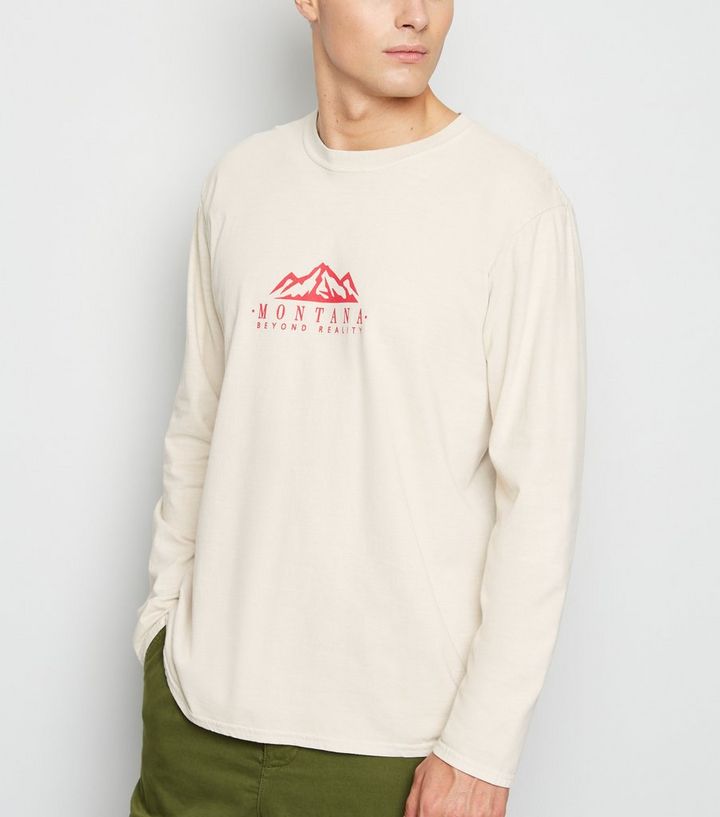 Graues Uberfarbtes T Shirt Mit Langen Armeln Und Montana Slogan New Look