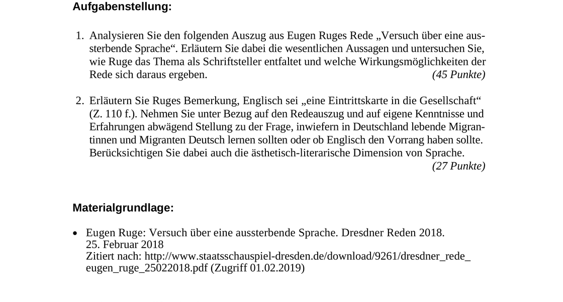 Robin zeigt dir die wichtigsten Schritte und den Aufbau (Titel, Einleitung, Hauptteil, Schluss) hierfür und gi. Rechnet man noch die % für die "Sprachliche Richtigkeit" dazu, so wird die Note maßgeblich vom korrekten und eleganten Umgang mit der Sprache Englisch bestimmt Daher ist ein guter Stil nicht nur für das allgemeine Sprachverständnis wichtig, sondern bringt auch handfeste Notenpunkte. Die Bedeutung einer politischen Ansprache hat ein sehr viel größeres Ausmaß als das einer einfachen Rede Der Zweck einer politischen Rede bzw das Ziel des redenden Politikers ist selbstverständlich stets der Versuch, die Meinung so vieler Menschen wie möglich zu prägen und sogar zu formen Um diese Funktion der Meinungsbildung effektiv zu erfüllen, bedienen sich.