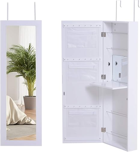 Weiss Schmuckschrank Mit Spiegel 152x36 5x10cm Abschliessbarer Spiegelschrank Standspiegel Mit Innenspiegel Und Klappbarer Innenablage Fur Make Up Schmuckschranke Kuche Haushalt Wohnen
