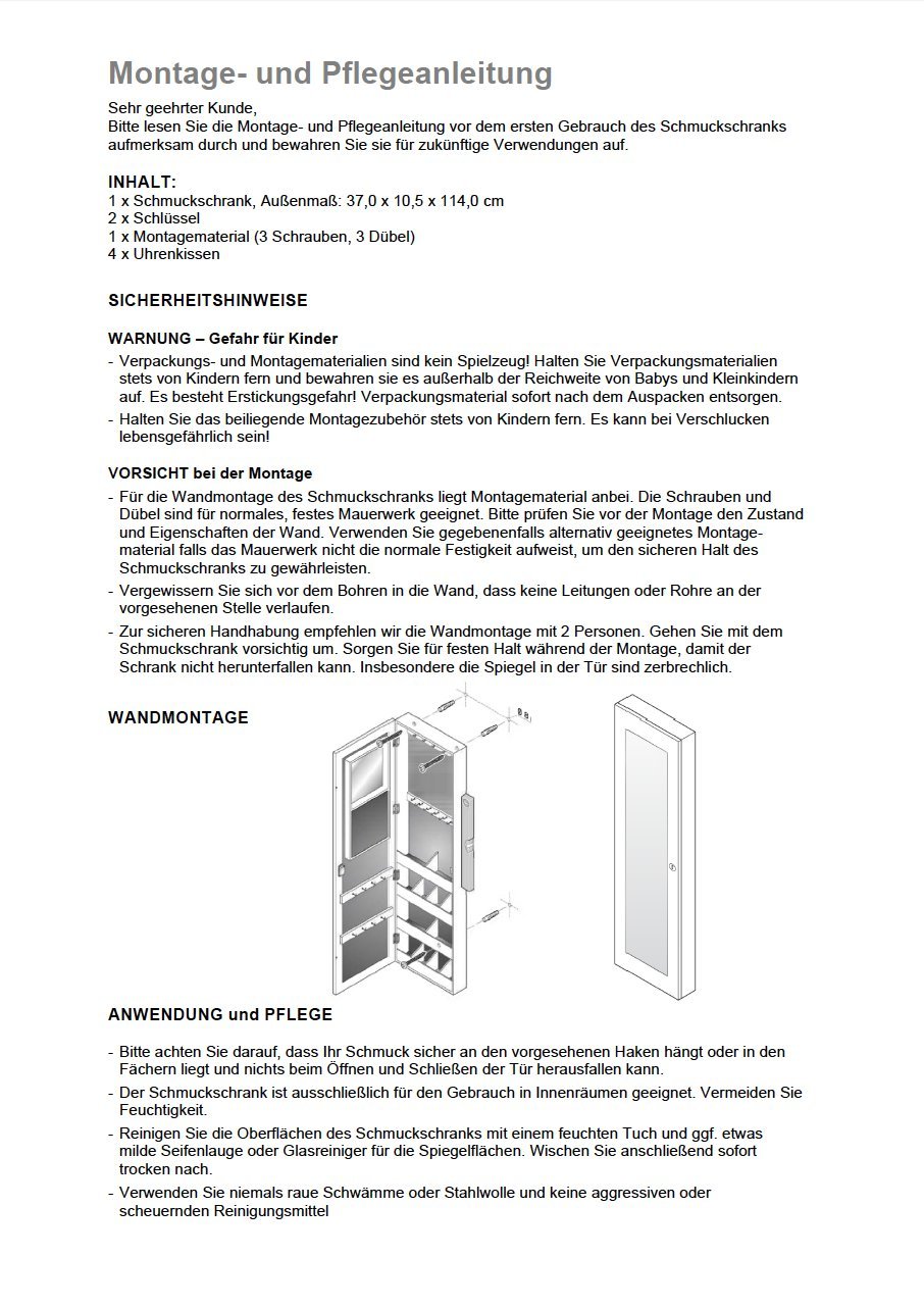 Schmuckschrank Spiegelschrank Turmontage Wandmontage Mit Innenspiegel Abschliessbar Weiss Jbc63wv1