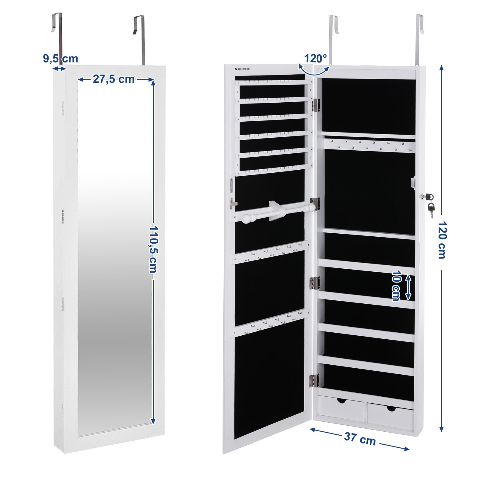 Songmics Schmuckschrank Jbc63wv1 Spiegelschrank 37 X 108 X 10 Cm B X H X T Weiss Online Kaufen Otto