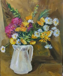 Original Bild Blumen Vase Realismus Buro Office Salon Wiesen Margerite Flowers Ebay