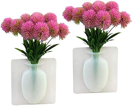 Sodial Selbst Klebender Luft Pflanzen Halter 2 Pack Wiederverwendbarer Silikon Wand Pflanzer Bohr Freie Blumen Vase Amazon De Kuche Haushalt