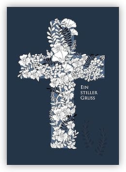 Edle Trauerkarte In Blau Mit Bluten Kreuz Ein Stiller Gruss Trostende Beistandskarte Um Den Hinterbliebenen In Stiller Trauer Zu Kondolieren Amazon De Burobedarf Schreibwaren