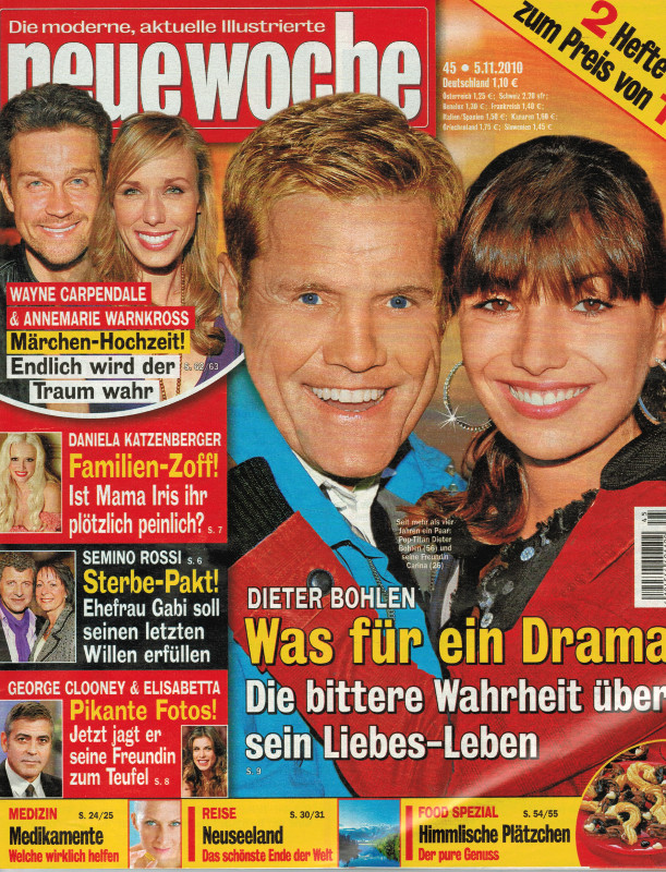 Die Zeitschrift "neue woche" im Abonnement Zeitschrift neue woche Kategorie Promis Lifestyle "neue woche" ist anregend, aufregend und anders Das bunte InfotainmentMagazin für moderne, junge Frauen, die Spaß am Leben haben hält über Promis und Stars des Kinos , Fernsehens, der Popmusik und des Adels, aktuelle News aus der Showszene, StarPortraits und Interviews, Liebe und. Die Neue Woche ist neben so bekannten nationalen Magazinen wie Focus, Freundin oder TV Spielfilm einer davon Ohne Frage zählt Burda Media, dessen Anfänge bis ins Jahr 1903 zurückreichen, zu den größten deutschen Medienkonzernen. Neue woche im Abo Mögen Sie eine bunte Mischung aus spannenden Artikeln über die Reichen und Schönen aus Adel, Film und Fernsehen und Ratgeberthemen, Tipps und Rezepten?.