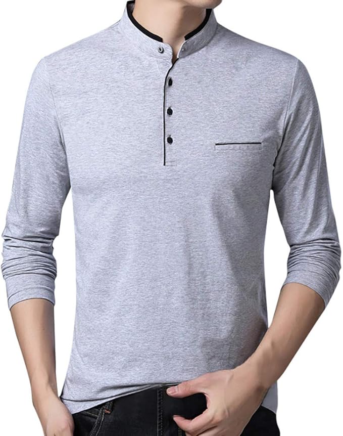 Heetey Hemd Top Herren Stehkragen Herren Langarm T Shirt Pure Bluse Top Langarmshirt Longsleeve T Shirt Top Pullover Pullunder Mit V Ausschnitt Oder Rundhals Slim Fit Amazon De Bekleidung