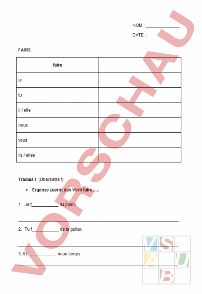 Arbeitsblatt Verb Faire Franzosisch Rechtschreibung