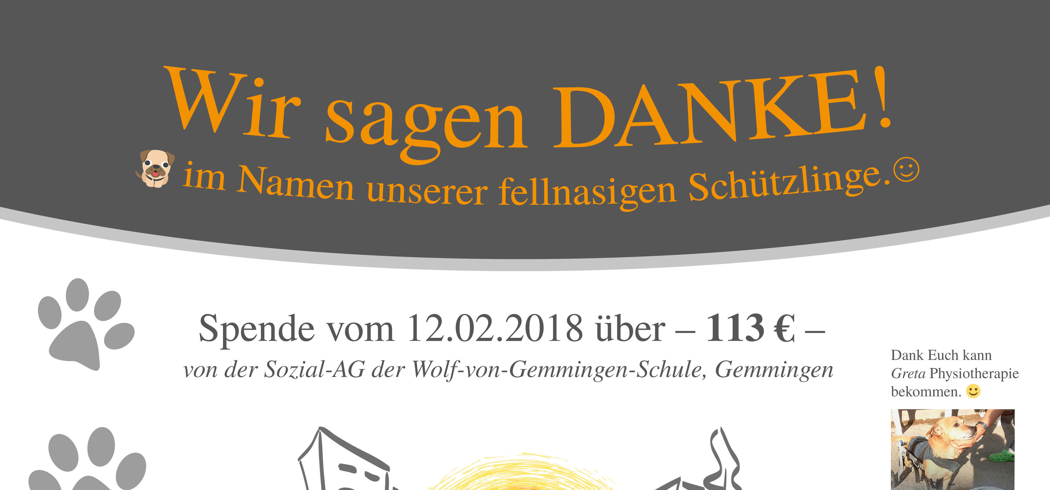 Wir sagen Danke für die Spenden!. Wir möchten uns recht herzlich für alle Geld und Sachspenden auch im Namen der Tierheimangestellen und der im Tierheim befindlichen Hunde bedanken Wir danken allen fleißigen Geldspendern aus 16!!!. — Danke, für dein.