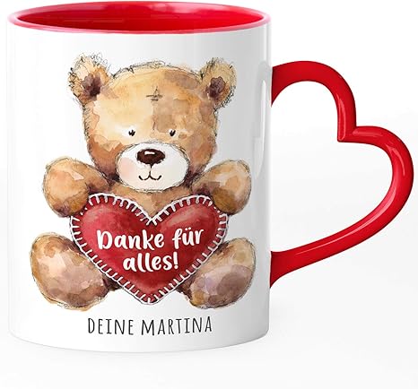 Amazon De Specialme Tasse Herz Henkel Geschenk Teddy Motiv Optional Personalisierbar Danke Sagen Trost Spenden Mut Machen Danke Fur Alles Rot Herz Tasse