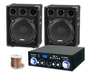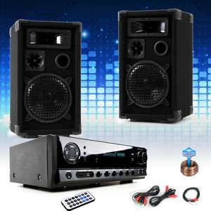 Verstarker boxen set. HiFi Verstärker & Boxen Set 3tlg Digitalverstärker 2x350W / 2x Lautsprecher 10" 450W RMS inkl Kabeln Fette Beats Das 3teilige HiFiSet bestehend aus der Fenton FPL700 Digitalverstärker der Kl. Karaoke Set Boxen Bluetooth Verstärker 2 Mikros DJCompact 4 Die extrem kompakte Musikanlage, bestehend aus einem Verstärker und zwei Boxen sollte in wirklich jedem Partyraum ihren Platz finden Zusätzlich mit dabei ein 10 Meter Lautsprecherkabel sowie Cinch und Audiokabel. VHF PA VerstärkerSet 2 Lautsprecher Boxen Lautsprecherkabel Mikrofon schwarz EUR 139,99 Marke Skytec Kostenloser Versand DJ PA KOMPLETT ANLAGE 2x BOX ENDSTUFE PARTY SET 10W 4,5 von 5 Sternen 2 Produktbewertungen 2 Produktbewertungen DJ PA KOMPLETT ANLAGE 2x BOX ENDSTUFE PARTY SET 10W.