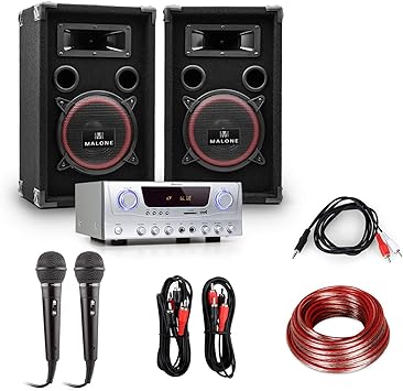Malone Soundbash Party Musikanlage Set Aus Pa Lautsprecher Boxen Mit Verstarker 300w Pa Lautsprecher Paar Pa Endstufe Inkl 10m Boxenkabel Schwarz Amazon De Musikinstrumente