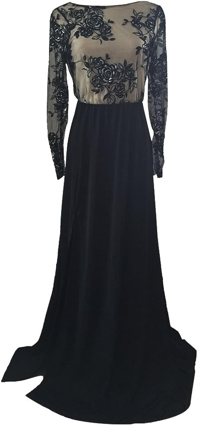 Vakind Sexy Damen Langarmlig Ruckenfrei Split Langkleid Schlitz Abschlussball Kleid Formal Abendkleid Partykleid Mit Gestickt Blumen Schwarz Eu Grosse 32 Amazon De Bekleidung