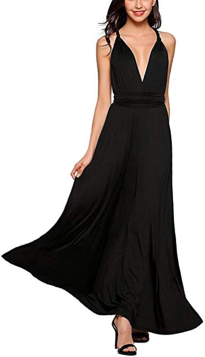Damen Frauen Multi Tragen Kreuz Halfter Abendkleid Brautjungfer Hi Lo Kleid Multiway Kleid V Ausschnitt Ruckenfrei Maxikleid Sommerkleider Strandkleid Cocktailkleid Partykleid Schwarz 36 38 Amazon De Bekleidung