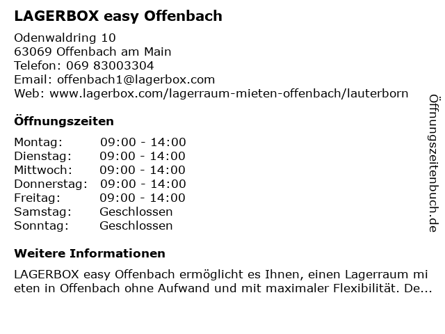 Ess Easy Self Storage Gmbh Offenbach Offnungszeiten Adresse Telefon