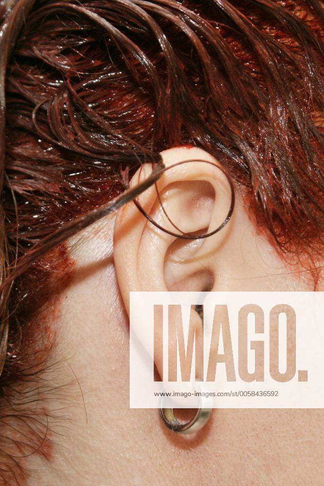 Ohr Und Gefarbten Roten Haare Einer Frau Stockfotografie Alamy