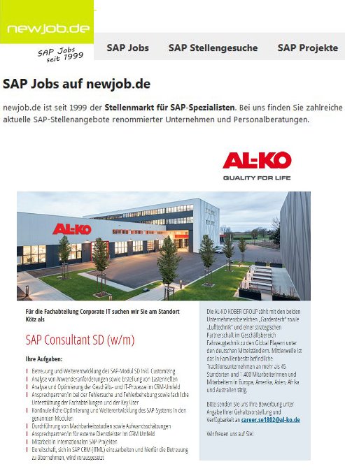 Newjob Sap Consultant Sd W M In Kotz Raum Ulm Gesucht Von Al Ko Kober Se T Co Dphvdpaeuj Al Ko Sap Job Sd