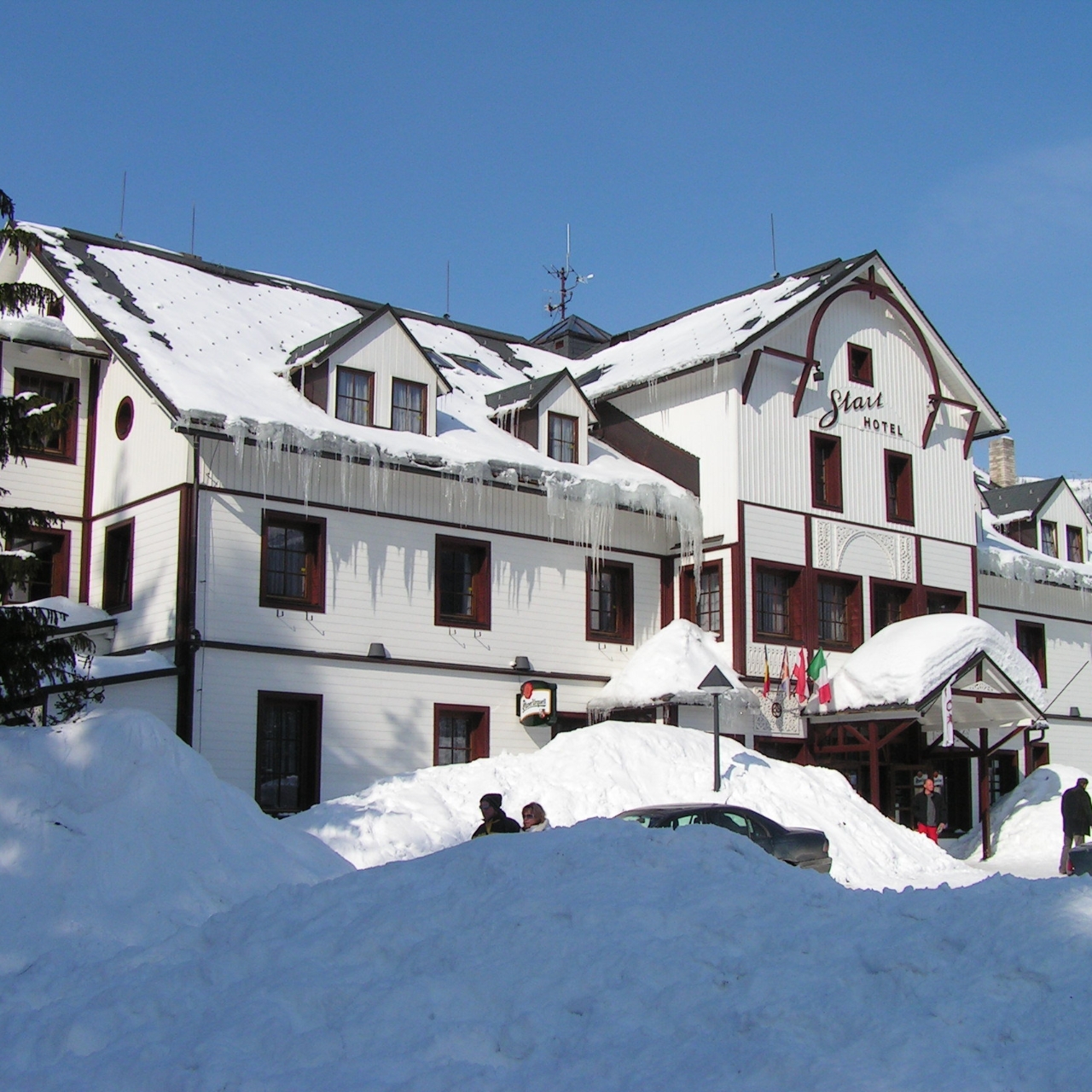 You can also see the entrance to the reception of the newly renovated Hotel Central 19, which provides comfortable accommodation in the center of Spindleruv Mlyn, luxurious rooms, a great restaurant Friuli and a very pleasant outdoor seating If you would like the best price for accommodation, contact Hotel Central 19 HERE. Our familyfriendly Start Hotel set in picturesque grounds right above the heart of Spindleruv Mlyn is located just 0m walking distance from the centre of the resort The Start Hotel is fully nonsmoking and offers quality facilities and comfortable accommodation not only for summer and winter sports enthusiasts but also for families with children, for which is just 100 metres from the hotel children´s ski school with ski lift and snow tubingThe Start Hotel is located in a forest. 180 metres from the centre of Spindleruv Mlyn (Bily mosticonic White bridge) 100 m children skilift, skischool and snowtubing.