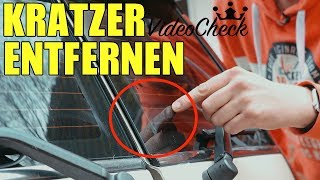 In diesem Video Tutorial zeige ich euch wir ihr Kratzer aus eurer Windschutzscheibe eures Autos entfernt Bitte abonniert den Kanal https//googl/nfzy07Neu. Kratzer in der Windschutzscheibe können die Sicht verschlechtern und bei Dunkelheit oder schlechtem Wetter zur Gefahr werden Auch die Blendwirkung entgegenkommender Fahrzeuge kann durch Kratzer verstärkt werden Zudem kann beim Überfahren von Schlaglöchern oder Bodenwellen schon der kleinste Kratzer zu einem Riss in der Scheibe führen. Wenn die Kratzer zu tief sind oder wenn Sie sogar Steinschläge in der Windschutzscheibe haben, sollte das Glas ausgetauscht oder von einem Fachmann behandelt werden Generell gilt hier, wenn Sie sich unsicher sind, lassen Sie von Anfang an einen Fachmann die Kratzer aus der Windschutzscheibe entfernen, bevor Sie durch eigenes Polieren Ihre.