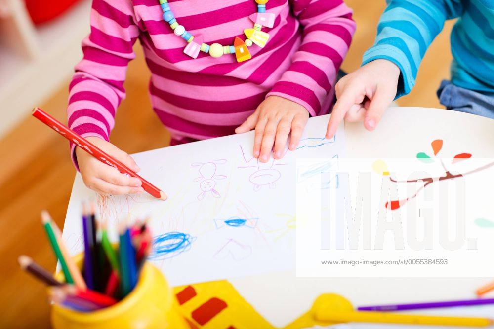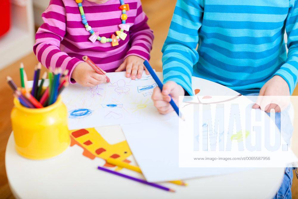Stockfoto Zwei Kleine Kinder Malen Mit Buntstiften Two