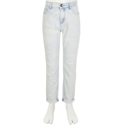 Girls Blue Bleached Mom High Rise Jeans River Island