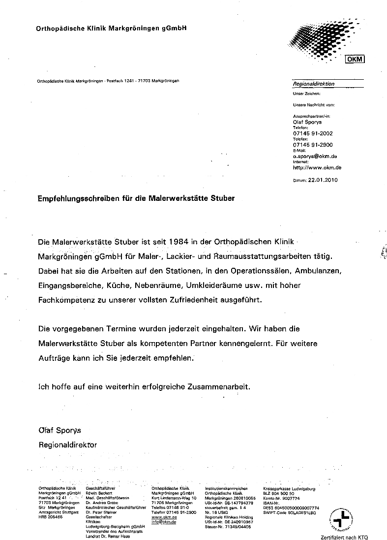 Bewertungen für Orthopädische Klinik Markgröningen in Markgröningen Jetzt über Behandlungen informieren oder selbst Erfahrungsbericht schreiben. Orthopädische Klinik Markgröningen gGmbH KurtLindemannWeg 10 Markgröningen Tel Fax EMail info(at)okmde Web wwwokmde Geschäftsführer Olaf Sporys Institutskennzeichen IKNr 260 810 055 UStIDNr DE 197 294 764 Steuerbefreit gemäß § 4 Nr 14 b) UStG. OKM Orthopädische Klinik Markgröningen Kliniken Krankenhäuser und Kliniken in Markgröningen Telefon, Adresse, Webseite, Öffnungszeiten, Bewertung.