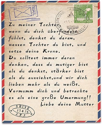 Hxsd Personalisierte Deutsche Nachricht Briefdecke An Meine Tochter Von Mutter Geschenkdecke Zum Geburtstag Weihnachten Thanksgiving 150 0cm Amazon De Kuche Haushalt