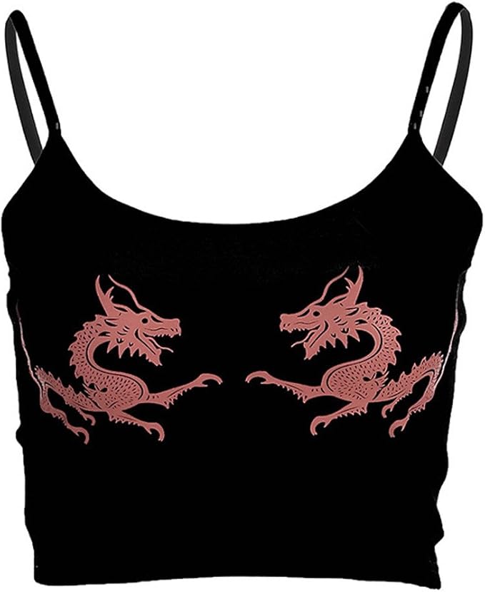 Tops Bauchfrei Damen Ulanda Teenager Madchen Crop Tops Ruckenfrei Kurz Oberteil Drachen Drucken Armelloses Tank Tops Weste Bluse Trager Top Hemd Frauen Lassiges Strappy Cami T Shirt Amazon De Bekleidung