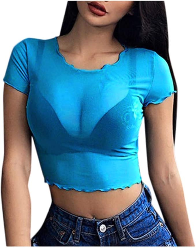 T Shirt Damen Bauchfrei Transparentes Netzoberteil Durchsichtiges Netz Kurzarm Shirt Crop Tops Grosse Grossen Casual Oberteile Amazon De Bekleidung