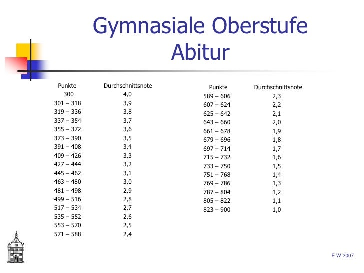 Abitur (German abiˈtuːɐ̯) is a qualification granted at the end of secondary education in Germany, Lithuania, and EstoniaIt is conferred on students who pass their final exams at the end of ISCED 3, usually after twelve or thirteen years of schooling (see also, for Germany, Abitur after twelve years)In German, the term Abitur has roots in the archaic word Abiturium, which in turn was. Ich wollte euch mal fragen, wie das mit dem Abi Punkten so ist Ich weiß, dass man in der Q1 und Q2 insgesamt 600 Punkte erreichen kann und man mindestens 0 Punkte braucht um ins Abi zugelassen zu werden. ECTS im Studium – das Punktesystem erklärt Veröffentlicht am 7 Februar 19 von Franziska Pfeiffer Aktualisiert am 28 September Die Abkürzung ‚ECTS ‘ steht für European Credit Transfer and Accumulation System Es ist ein PunkteSystem, das an europäischen Hochschulen eingeführt wurde, um die Anerkennung von Studienleistungen im In und Ausland zu strukturieren.