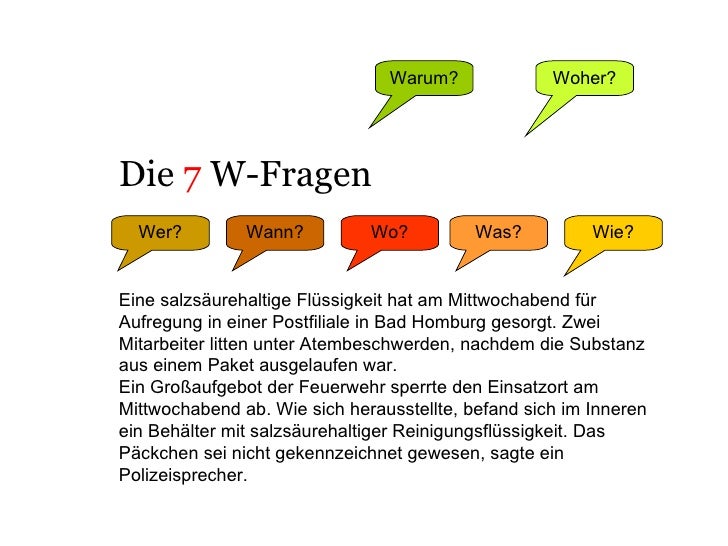 Die 7 w fragen. Schritt für Schritt ist die Lösung Eine erste Gliederung und Sortierung der Gedanken ermöglichen die “7 WFragen” 1 Was will ich herausfinden?. Pingback Die 7 buchigen WFragen WortKunstSalat Katjes sagt 16/06/16 um 933 Uhr Eine sehr schöne Idee mit den Fragen Deine Antworten gefallen mir und ich glaube, ich werde auch die Fragen beantworten und auf meinem Blog stellen Antworten sternenbrise sagt. Vernehmungs u Spurenkunde Grundsätze der Kriminalistik Die 7 W Wer TäterWas StraftatWann TatzeitpunktWo Tatort (Tatort ist nicht immer der Auffindungsort)Wie TathergangWomit Spuren.