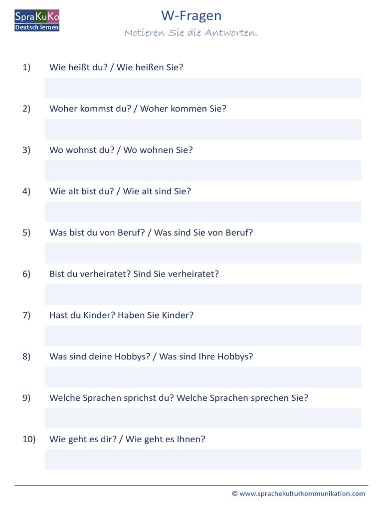 W Fragen Deutsch Youtube