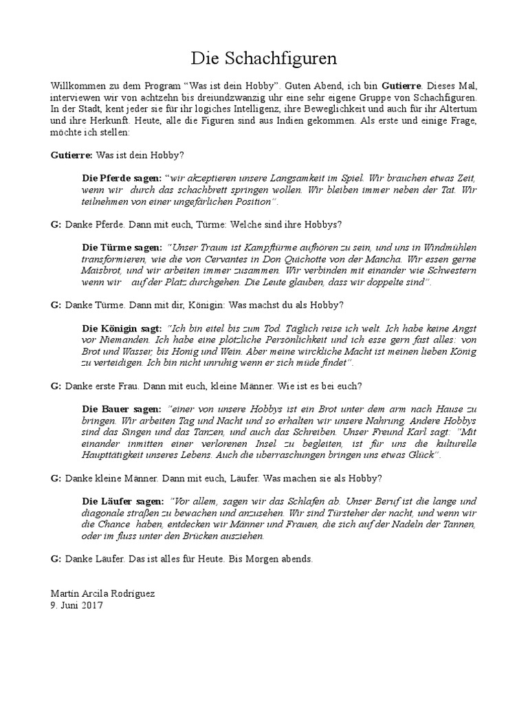 Das ist sehr gut Sucht und kombiniert die für euch wichtigen Sätze. Dieser Test verrät, wie du dein passendes Hobby findest Umso wichtiger sind daher passende Hobbies, in denen du Luft holen und Kraft tanken kannst Und natürlich genau das tun, was du gerne machst Directed by Cyrill Boss, Philipp Stennert. View hobbyspdf from LANGUAGE TGC401 at Universiti Teknologi Mara HOBBYS Was ist Ihr Hobby ?.