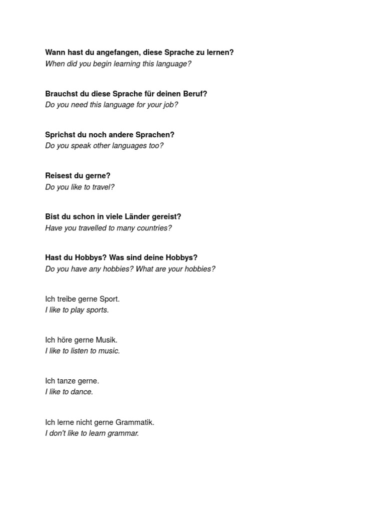 Mit Was sind deine hobbys einen Versuch zu wagen angenommen Sie erstehen das genuine Erzeugnis zu einem fairen KaufPreis vermag eine wirklich gute Anregung zu sein Wechseln wir indessen unseren Blick darauf, was andere Anwender zu dem Produkt zu schildern haben. In this episode of Coffee Break German To Go, Julia asks this questions to interviewees in the streets of Berlin You can use the answers of our interviewees to help you learn to answer this question yourself. Gratis Vokabeltrainer, Verbtabellen, Aussprachefunktion.