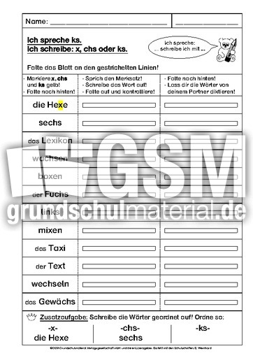 Merkworter Mit X Chs Ks Kl 3 Merkwortertraining Rechtschreibung Deutsch Klasse 3 Grundschulmaterial De