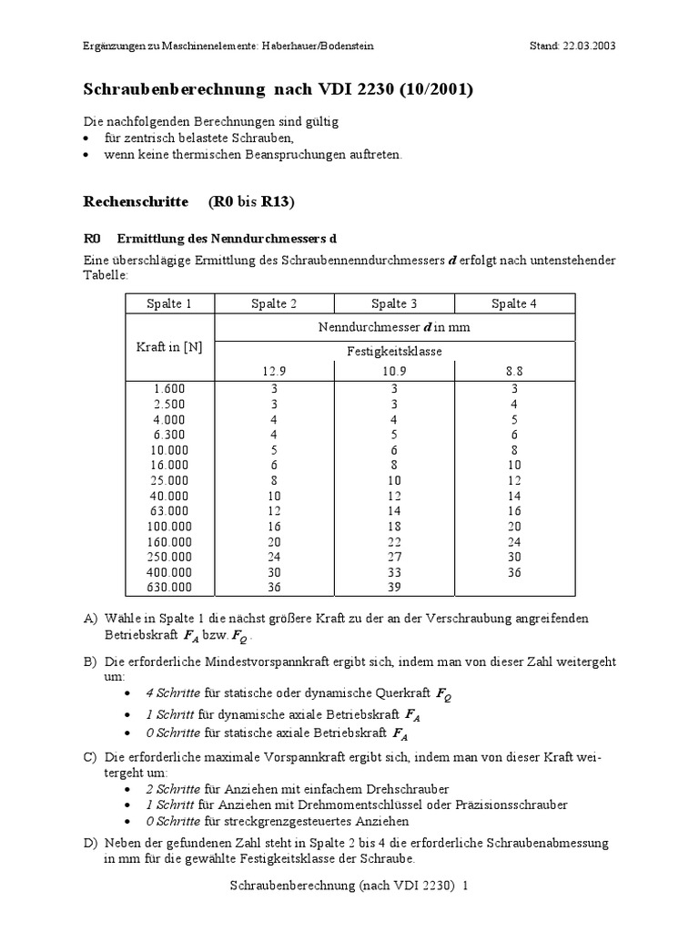 22 Berschlgige Schraubendimensionierung Nach Vdi 2230 Blatt 1 03 02