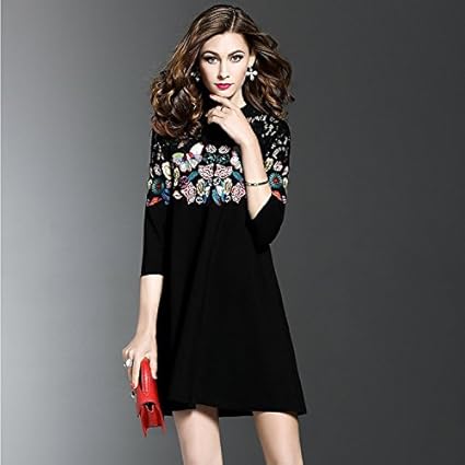 Zhudj Spitzenkleid Herbst Kleid Grosse Ein Ausgestellter Rock Lose Nahte Stickerei Spitze Feder Schwarz M Amazon De Sport Freizeit