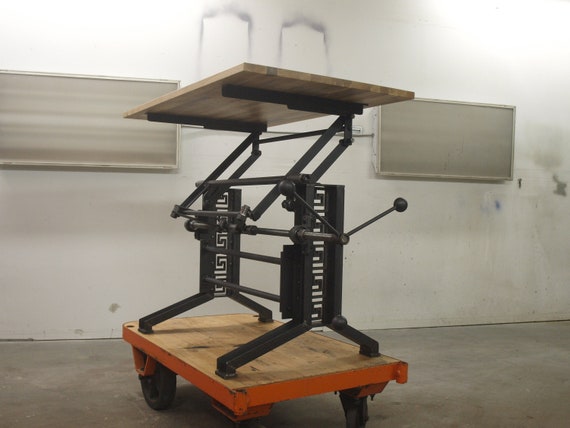 French Industrial Lift Table Desk Sitting And Standing Hieght Etsy