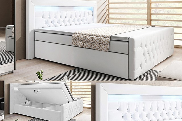 Boxspringbett York Lift Hotel Bett Doppelbett Bettkasten 160x0 Weiss Fussteil Ebay