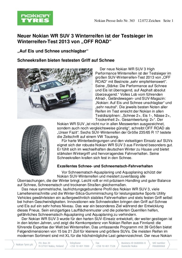 Nokian Winterreifen Sind Die Testsieger Neuer Nokian Wr Suv 3 High Performance Winterreifen Fur Harte Winterbedingungen Komplettiert Das Wr Reifenangebot Fur Die Schweiz Presseportal Schweiz Ch